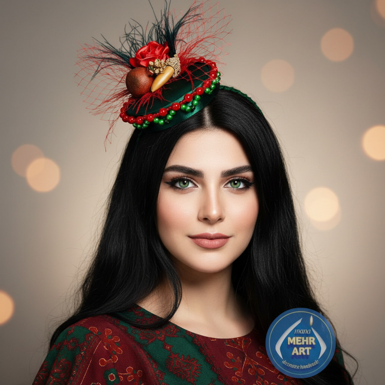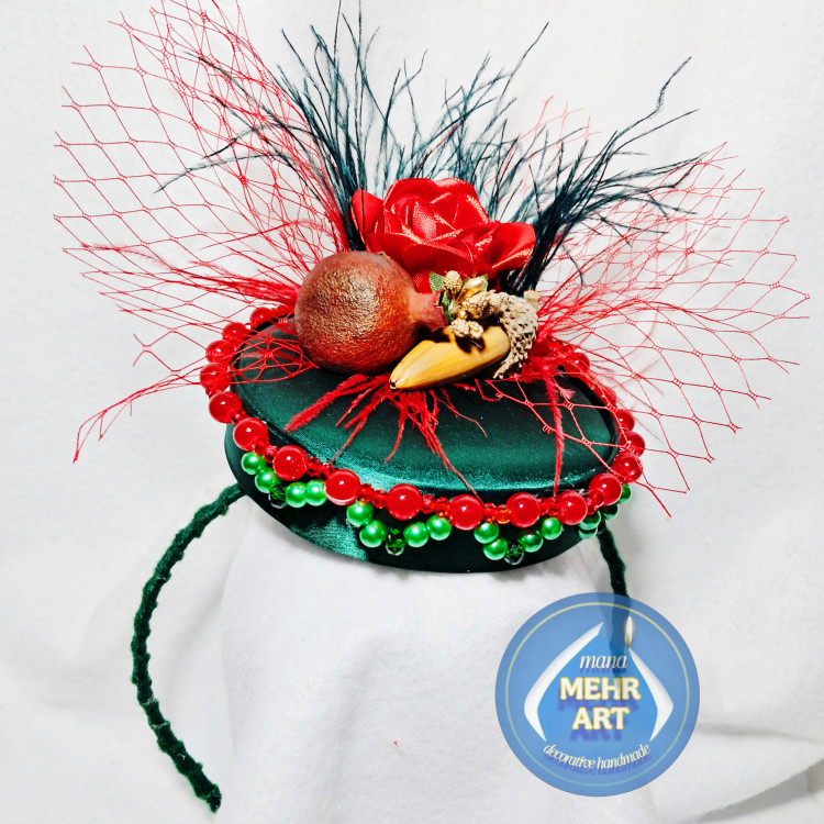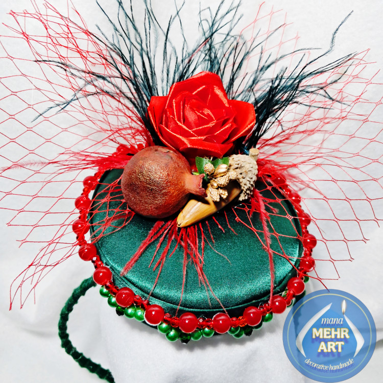 کاپ کلاه یلدایی (با تزئینات گل و انار و بلوط)