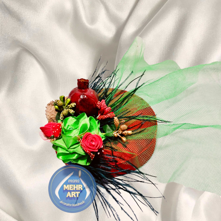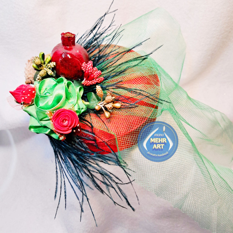 کاپ کلاه یلدایی با تزئینات گل و انار و بلوط