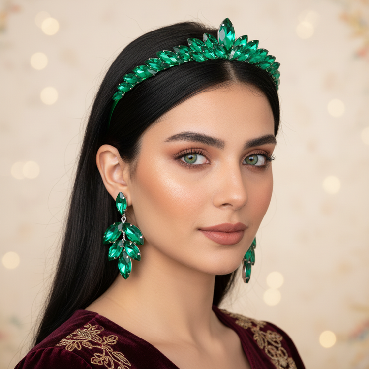 ست تاج و گوشواره با نگین سنگی (مناسبتی،یلدایی)