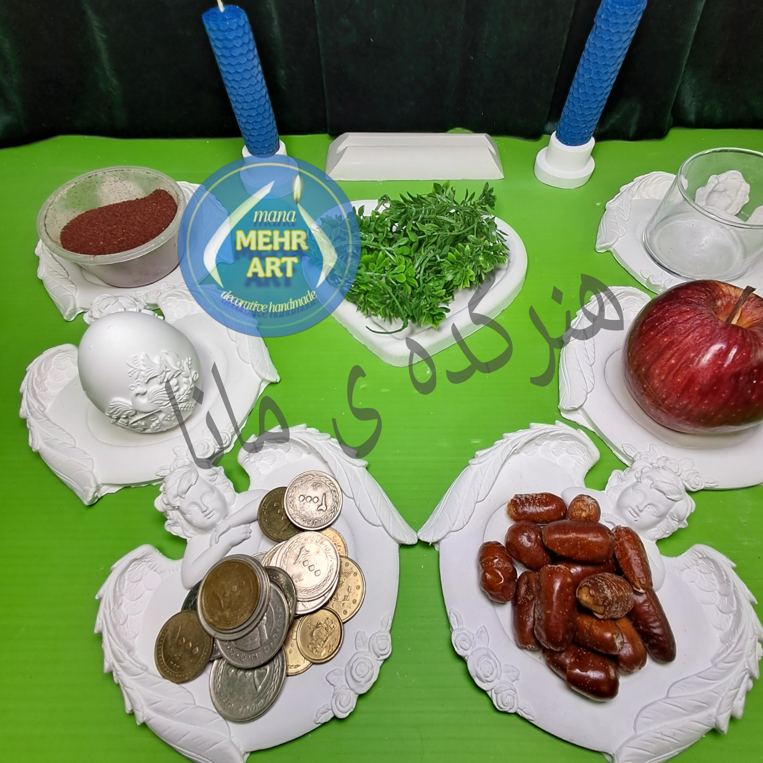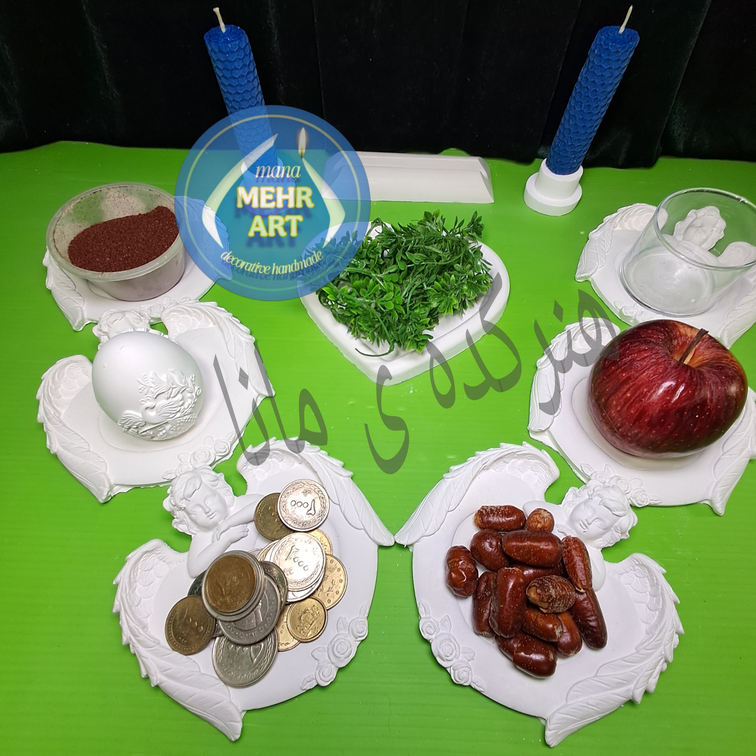 ظروف هفت سین ده تکه سنگ مصنوعی طرح فرشته