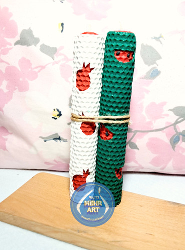 شمع یلدایی طرحدار بسته ی دو تایی موم عسلی