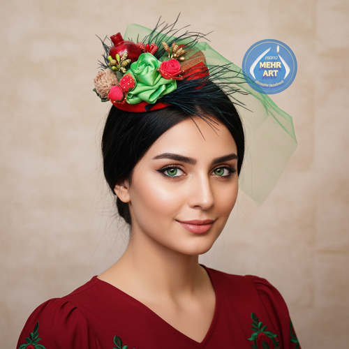 کاپ کلاه یلدایی با تزئینات گل و انار و بلوط